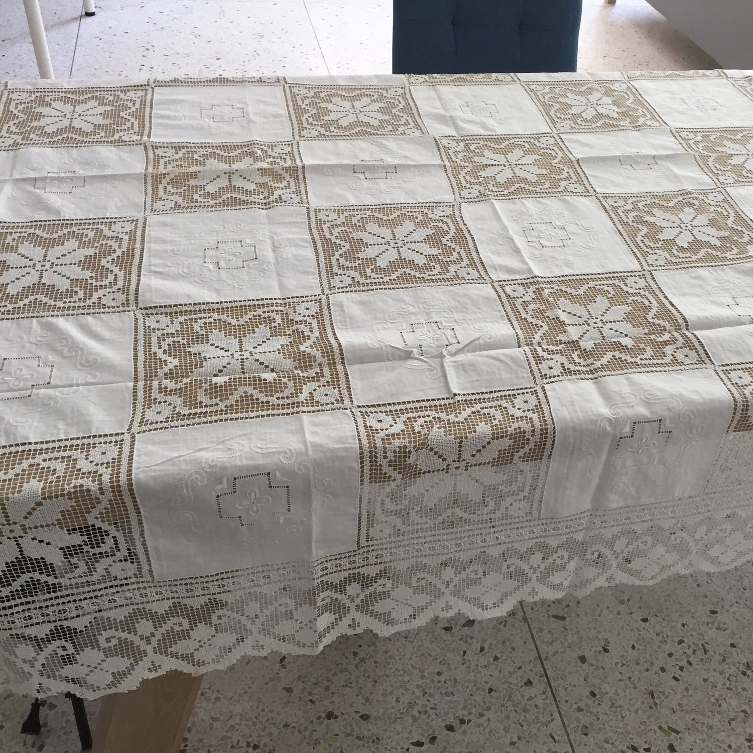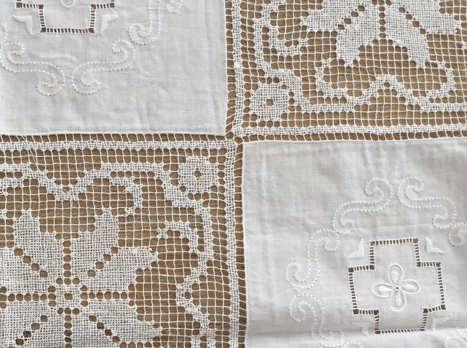 The solid whitework embroidery depicted the Army, and the Lace insertions depicted the Navy.